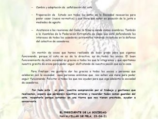 Recordamos que la Sociedad de Cazadores San Antón Abad convoca a todos sus socios a la Asamblea General Ordinaria correspondiente a la temporata 2020-2021. Se […]